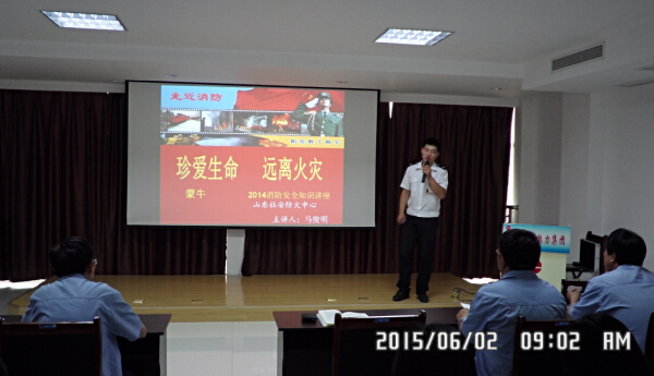 2015年6月2日上午九點,泰安市社安消防服務中心馬俊明教官為公司員工進行了一場專業(yè)、真實、生動的消防宣講,通過火災真實案例,重點講解了火災種類及發(fā)生原因、如何控制初期火災、自救逃生方法、消防器材應用等消防知識,告知大家生命只有一次,“珍愛生命,遠離火災”,不要懷有僥幸心理,敲響了預防火災的警鐘。通過此次消防知識講座,大家深有感觸,普及了消防知識,提高了消防安全意識,拉開了“安全生產活動月”的序幕。